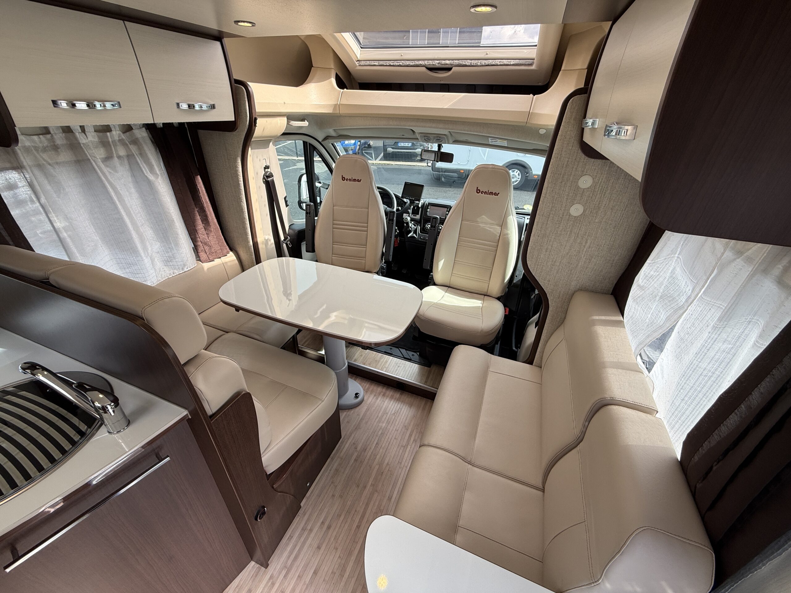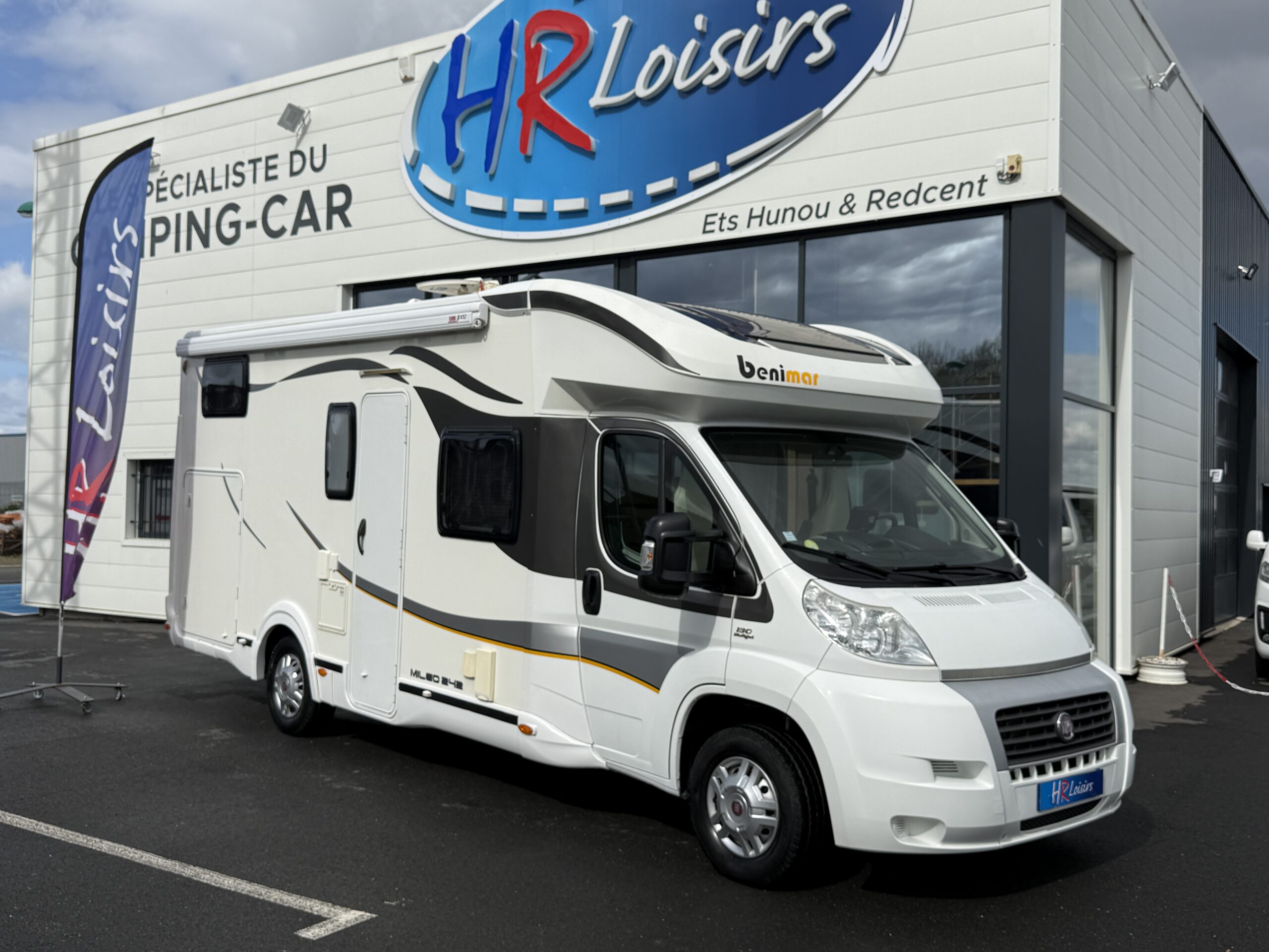 HR LOISIRS le spécialiste du Camping-Car est heureux de vous proposer : ========================================== Superbe Camping-Car profilé de marque Benimar modèle Mileo 242 du 02/05/2013 avec seulement 36300kms en motorisation 2.3L FIAT (6vitesses). ******************************************************** Lit sur soute + Lit pavillon + Lit dinette 5 places carte grise et 5 couchages Première main Véhicule en excellent état ! ========================================== Équipements : – Rafraichisseur d’air – Système Sog – Douchette extérieur – Béquilles – Grande douche – Sièges avant pivotants – Panneau solaire – Moustiquaire de porte cellule – Stores plissés de cabine – Store extérieur – Chauffage truma gasoil – Parabole automatique – TV – Grand réfrigérateur + congélateur – Nombreux rangements – Lit sur soute réglable en hauteur – Lit pavillon – Lit dinette – Gaz 3 feux – Autoradio digital avec navigation – Rétros + vitres électriques – Régulateur de vitesse – Climatisation cabine – Caméra de recul – Porte vélo *4 ——————————————————————– L x l x h : 6.99 x 2.30 x 2.89 m ——————————————————————– Nous sommes bien propriétaire du camping-car, ce n’est pas un dépôt vente. Véhicule entièrement révisé et garantie. Reprise et financement possible Plus de renseignements sur demande
