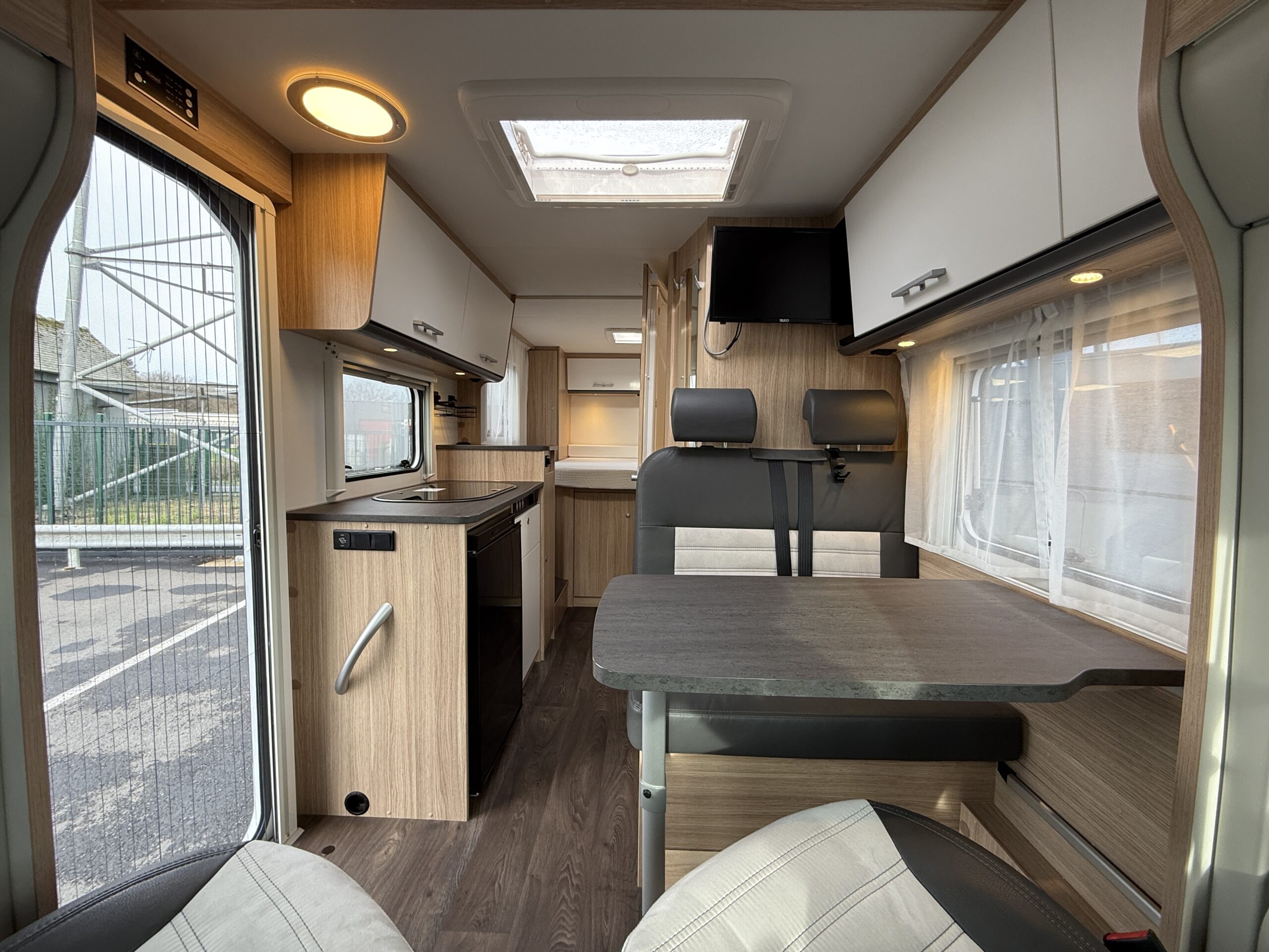HR LOISIRS votre nouveau concessionnaire CARADO en Indre et Loire, spécialiste du Camping-Car est heureux de vous proposer : Superbe Camping-Car Profilé de marque Sunlight modèle V 69 de la collection 2023 avec seulement 11000kms en motorisation Citroën 2.2L 140cv . ************************************************************** Lit central 4 places carte grise et 2 couchages =============================================== Équipements : – Panneau solaire – Moustiquaire porte de la cellule – Lit central – Stores plissés de cabine – Grande soute – Store extérieur – Lanterneau panoramique – Lanterneau translucide – Caillebotis de douche en bois – Réfrigérateur + freezer – Nombreux rangements – Truma gaz – Gaz 3 feux – Régulateur et limiteur de vitesse – Ordinateur de bord – Vitres électrique + rétroviseurs électriques – Jantes alliage 16″ bicolores – Climatisation cabine – Sièges av pivotants – Caméra de recul ——————————————————————– L x l x h : 6.86 x 2,14 x 2,87 m ——————————————————————– Nous sommes bien propriétaire du camping-car, ce n’est pas un dépôt vente. Véhicule entièrement révisé et garantie. Reprise et financement possible Plus de renseignements sur demande